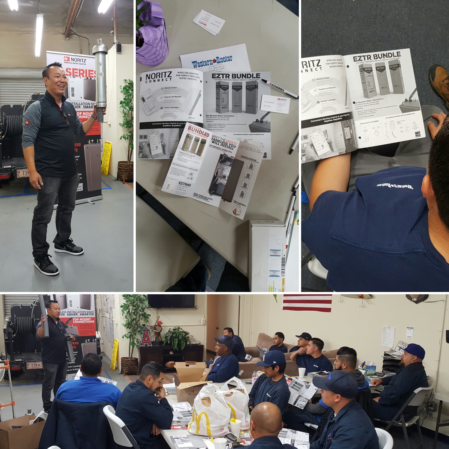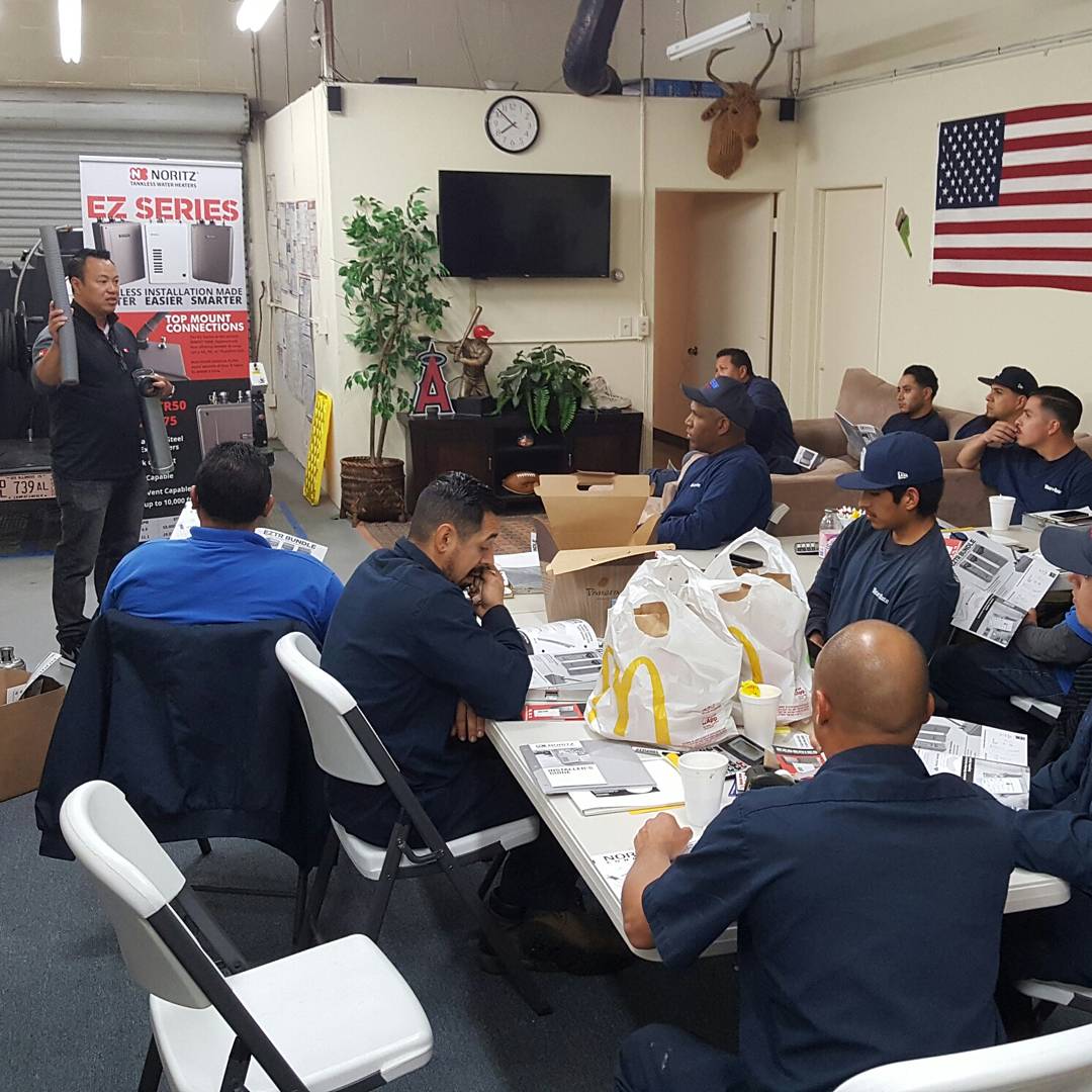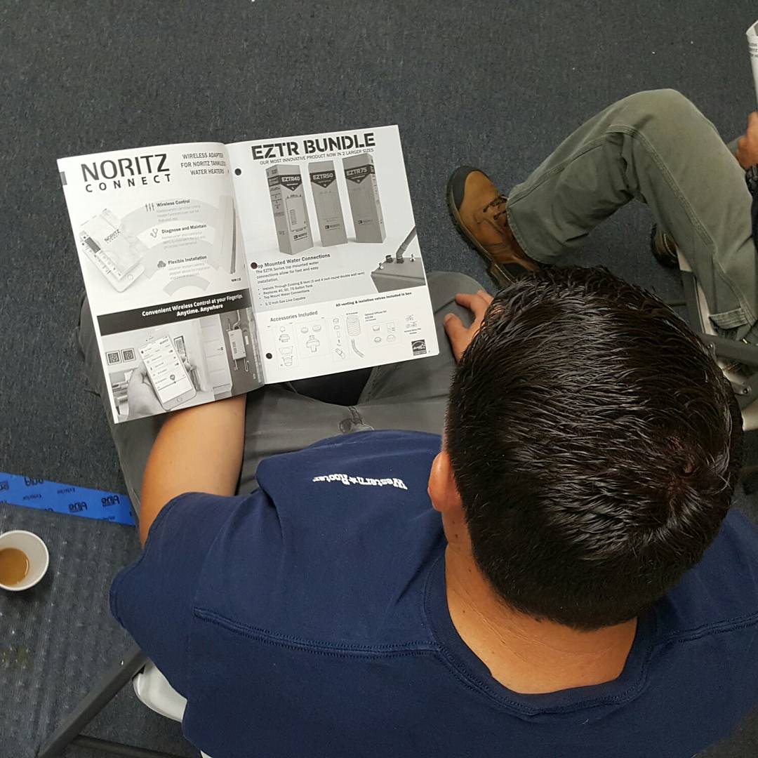 Our team spent time with a Gary Hernando going over tankless hot water heaters from Noritz today, as part of our Spring Time Training. They wanted to show us their new tankless water heater series, the EZTR Bundle, which provides an easy and seamless replacement for a conventional hot water heater.